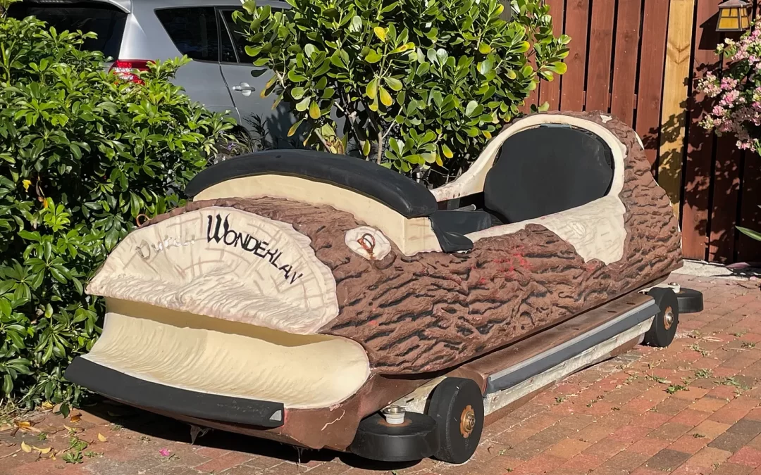 Because we live in Orlando, Florida, I assumed that it had to be from an old amusement park in the area with the word “Wonderland” in its name. Research revealed that the closest one was Tropical Wonderland (formerly Florida Wonderland), which operated in Titusville, FL from 1959 to 1973. However, old photos of their flume ride that I dug up didn’t quite match what I’d seen.