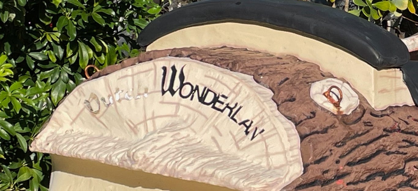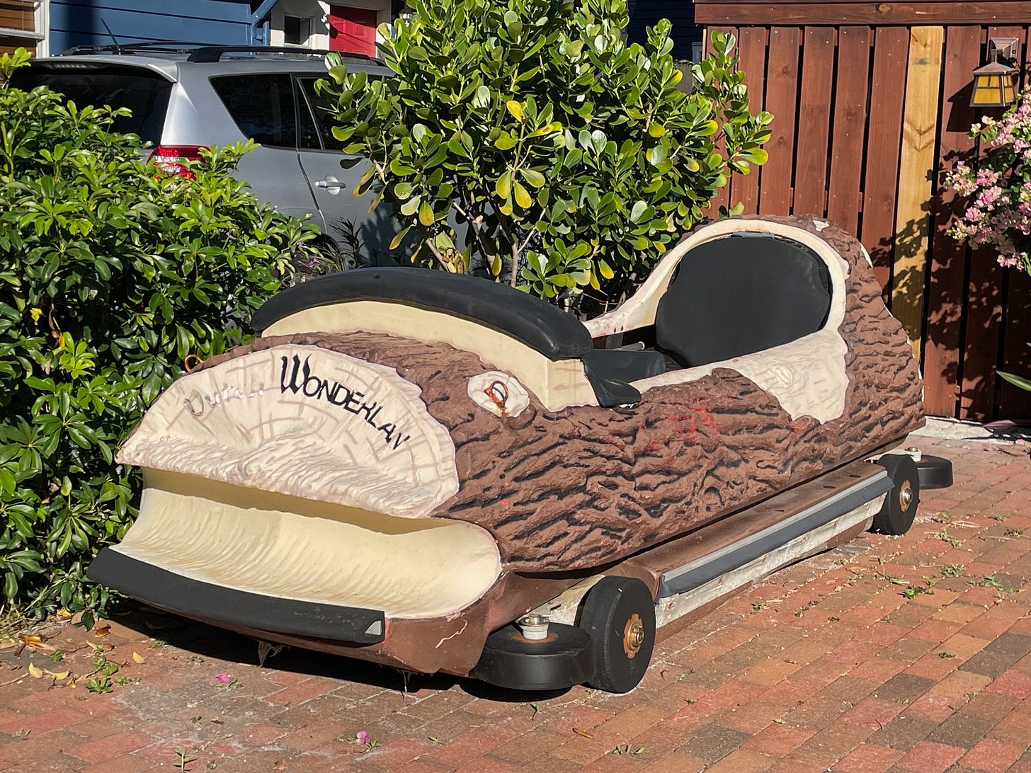 Seeing that made me wonder about the story behind it. From the street, all I could read on the front was “Wonderland.” Where did it come from? Can I sit in it? To get these burning questions answered (well, at least the first one), I sped home faster than usual from my morning walk.